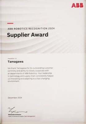 The award was awarded for close communication and cooperation with all ABB robot-related departments, support for ABB’s technological innovations and adaptation to a rapidly changing market environment, and leadership in the supply chain. Tamagawa Seiki Group is highly regarded for its dedicated cooperation from the customer’s point of view.